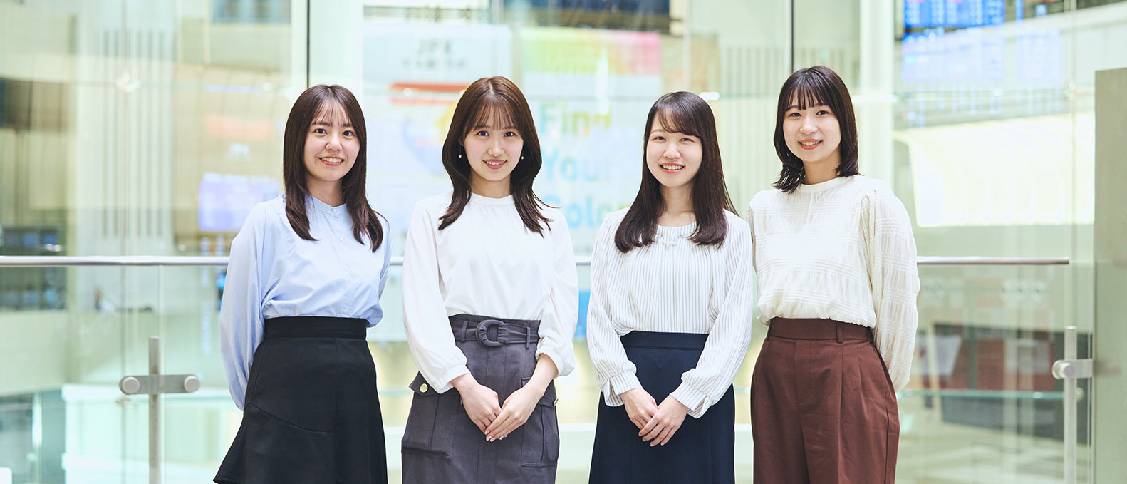 Yさん 私も公共性の高さに惹かれました。仕事を通じて幅広い業界の人を支えることができる点も魅力でした。また、選考過程で出会った先輩が、私の質問に丁寧に答えてくださったのも好印象でした。最後の決め手は、採用担当者も一人ひとりを見てくれていると感じたことでした。